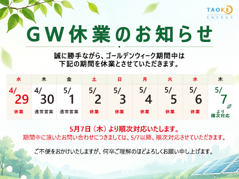 2025年内セミナー・見学会プランのご案内、TAOKE GROUPが上海に新工場を開設 インテグレーション・研究開発体制を強化 、【大反響御礼】TAOKE ENERGY、CATLと蓄電所投資セミナー開催