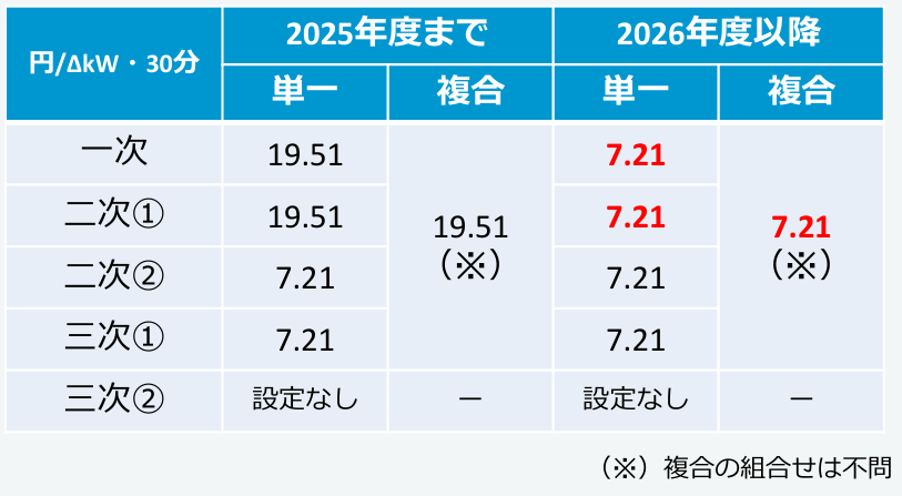経済産業省は2026年度以降、一次調整力、二次調整力①、および複合商品の上限価格を見直す方針です。これらの商品の価格を19.51円/ΔkW・30分に設定していましたが、他の商品の価格(7.21円/kW・30分)に比べれば高めにしていました。